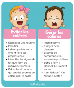 • Évitez les situations où vous êtes sûr que bébé piquera une crise (par exemple, évitez le rayon bonbons du supermarché où les enfants font généralement plus de colères).