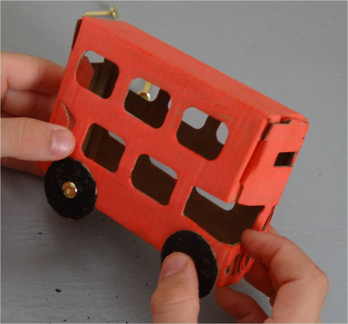 Le bus que tu viens de fabriquer porte un nom : le bus impérial ou en anglais, double-decker ! Le premier de ce type a été inventé en France en 1853 et il fallait trois chevaux pour le tirer ! Les bus à impériale rouges de Londres sont, avec les cabines téléphoniques et les boîtes aux lettres rouges, parmi les symboles les plus emblématiques de Londres et de l’Angleterre ! Tes petits jouets vont pouvoir voyager dans un bus mythique.
