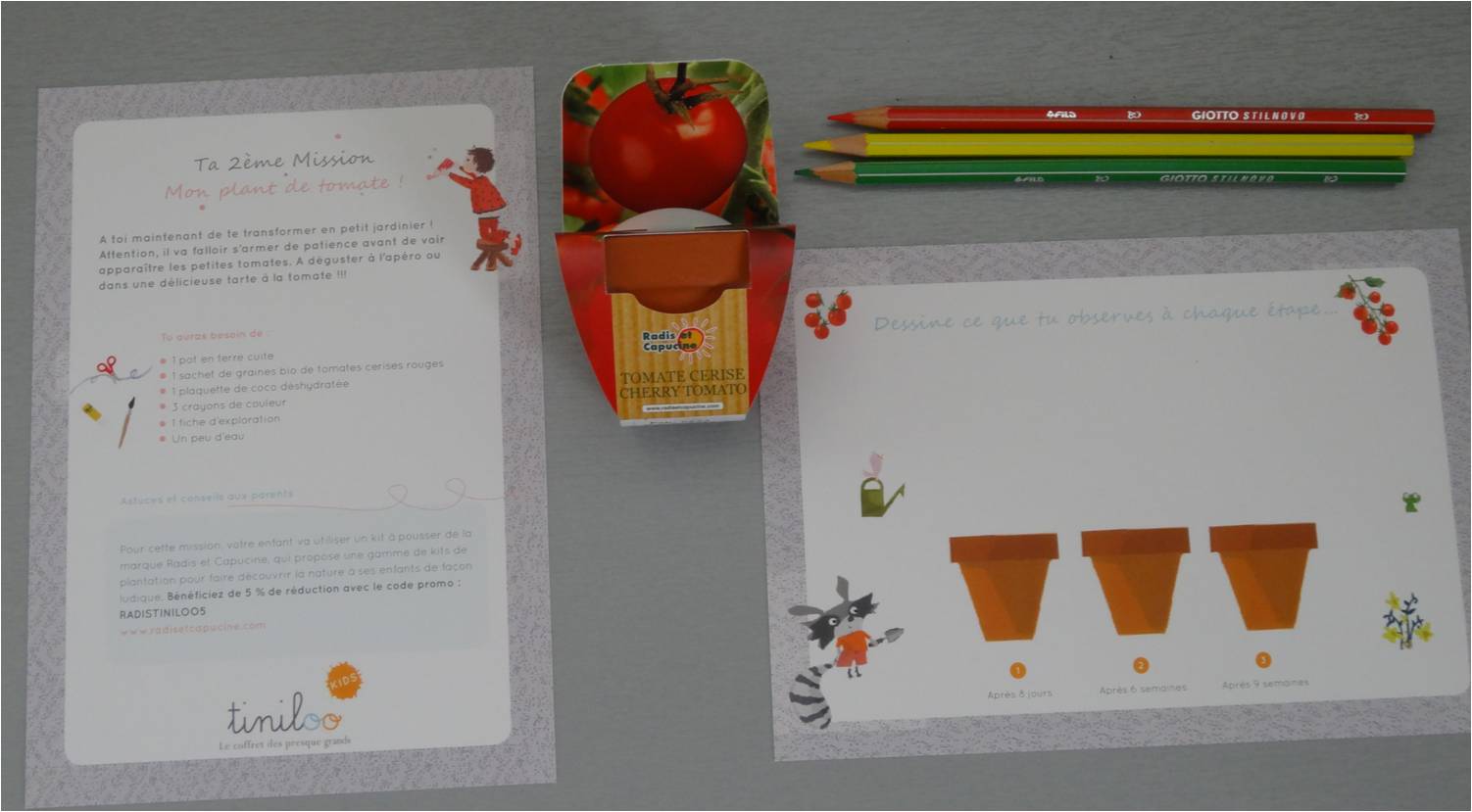 Pour cette mission, votre enfant va utiliser un kit à pousser de la marque Radis et Capucine, qui propose une gamme de kits de