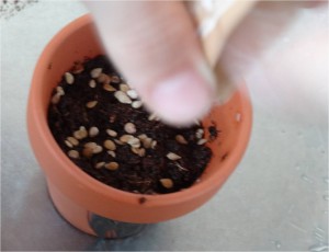 3. Sème quelques graines en les espaçant et recouvre-les de terre.
