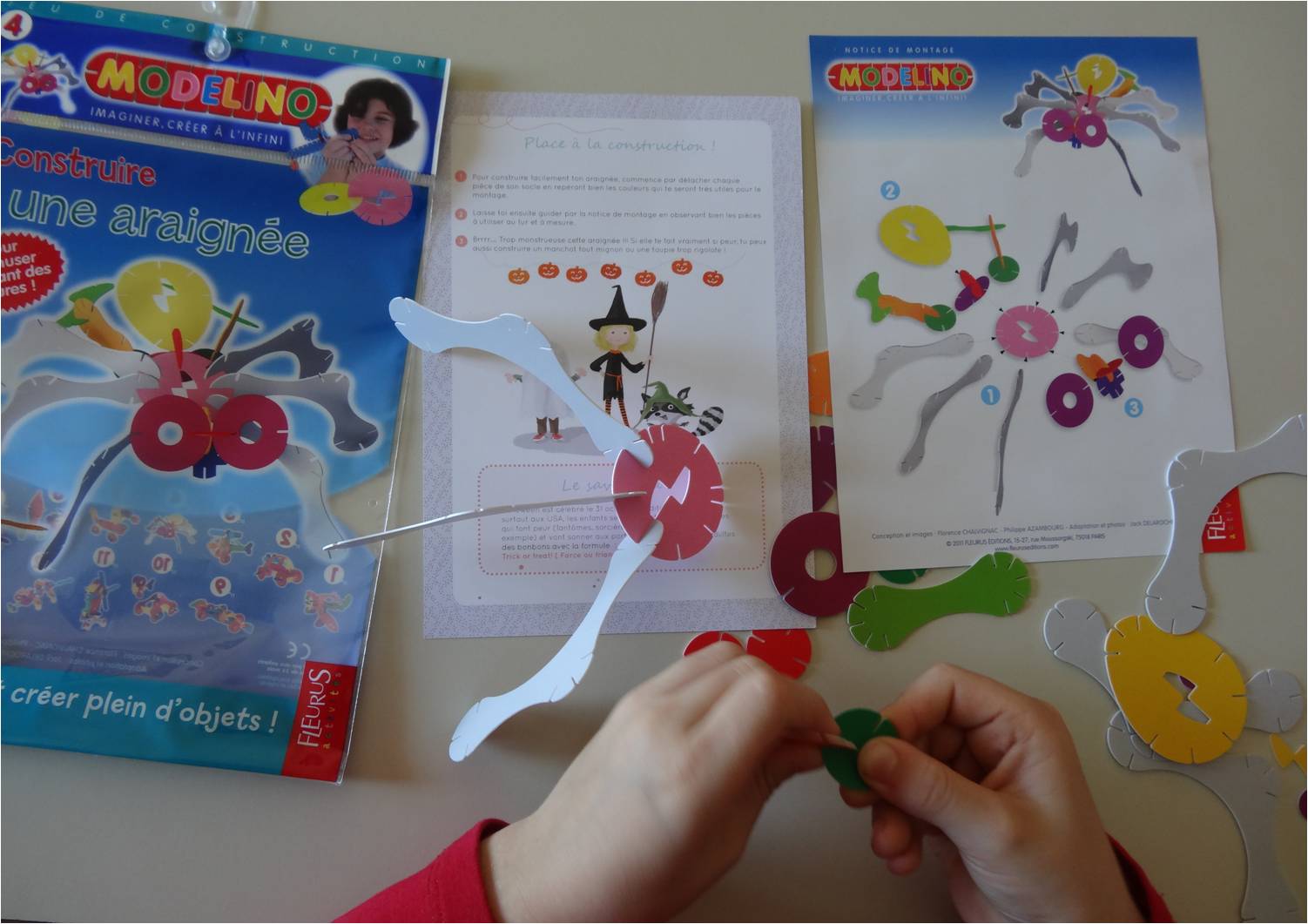 Pour cette mission, l'enfant utilise une pochette Modelino "Construire une araignée" de la maison d’édition Fleurus.