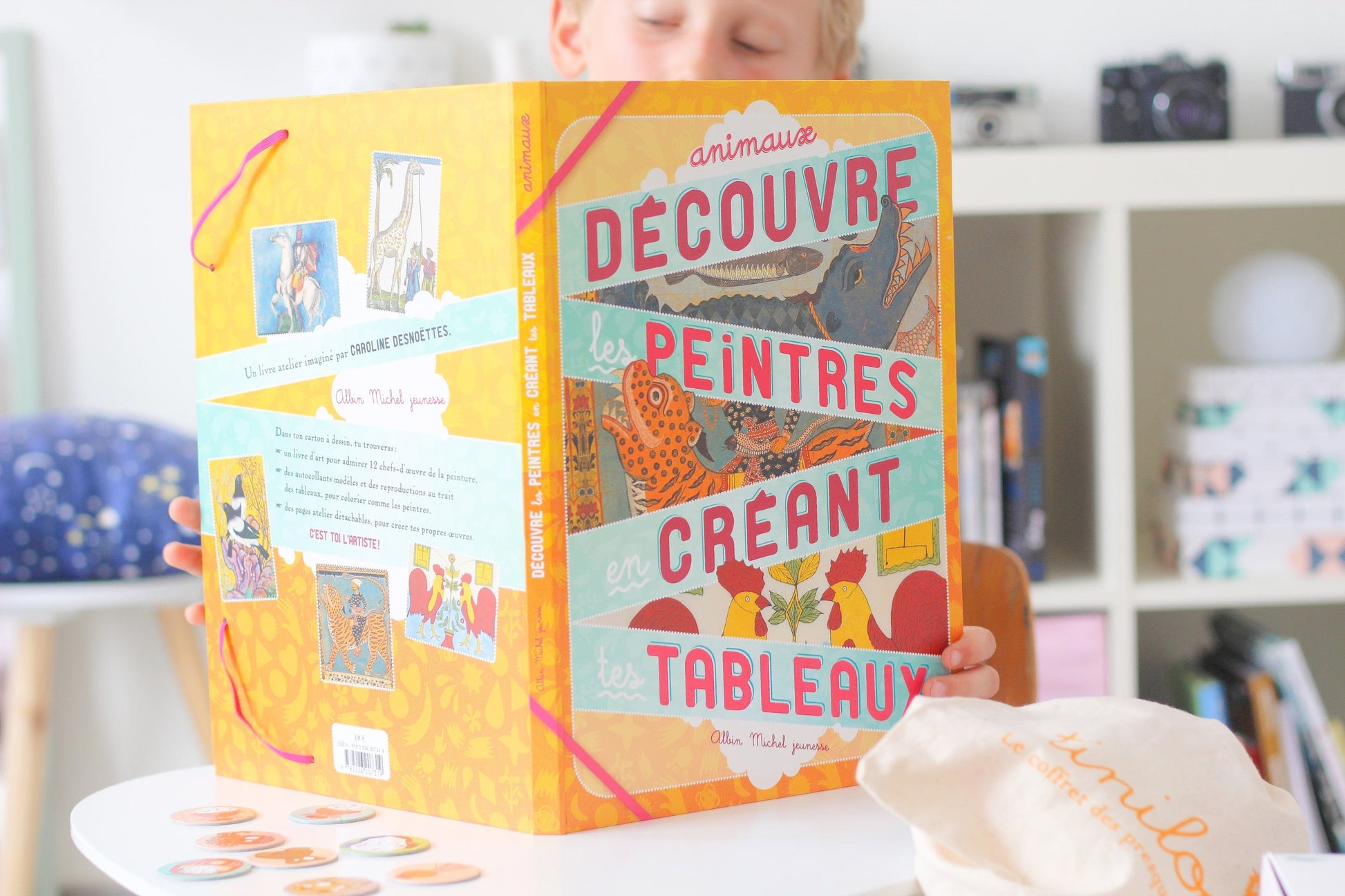 - un grand livret de 28 pages, glissé dans une pochette, qui valorise 12 peintures inhabituelles, aux techniques variées, venant des quatre coins du monde et mettant en scène des animaux : un chat, un chien, des coqs, un cheval, un tigre, un kangourou, une girafe, un crocodile. et même un animal imaginaire !